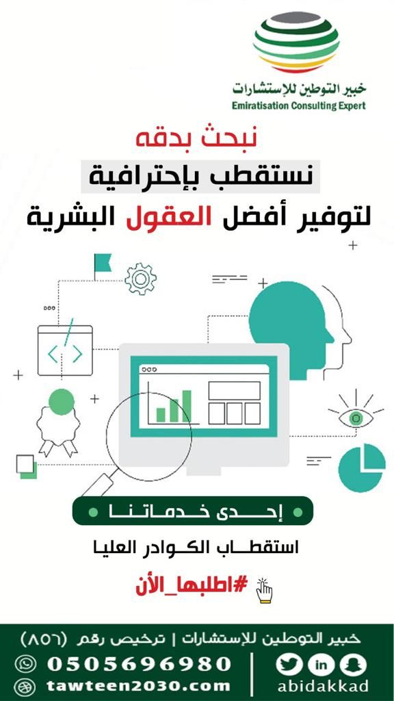 للتعرف على خدمات خبير التوطين يمكنكم زيارة الرابط www.tawteen2030.com